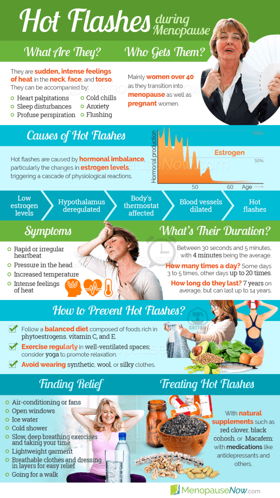 Hot flashes start in my core, with an intense heat wave that immediately causes beads of sweat to break out in my scalp, hairline, face, and the dreaded boob sweat. It’s intense, sudden, and miserable. When it finally subsides, it leaves me wet/sweaty, which then leaves me really cold. I’ve found that if I dress in layers (tank top under a tunic), I can peel off the top layer to minimize the heat somewhat. Sound familiar?