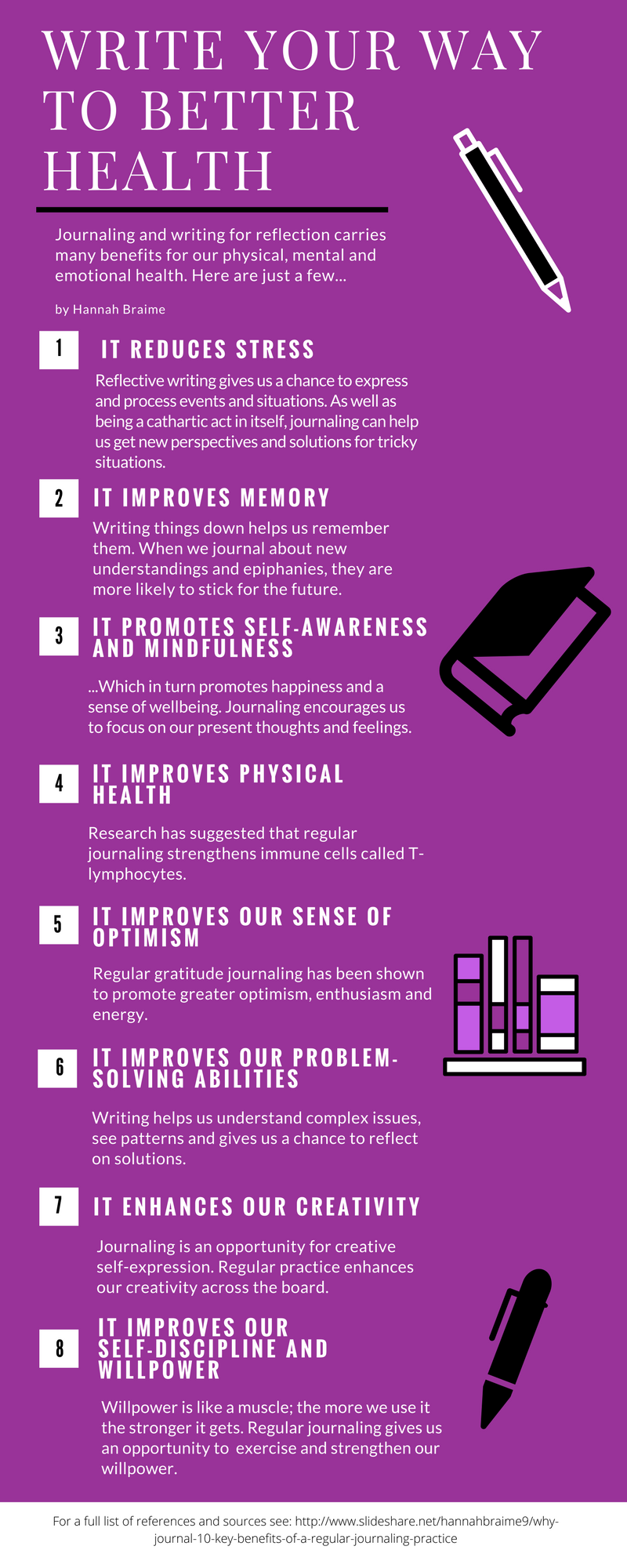 Let’s look at tangible benefits from journaling! There are many websites, including medical ones like Kaiser Permanente, that encourage journaling, and list the benefits.