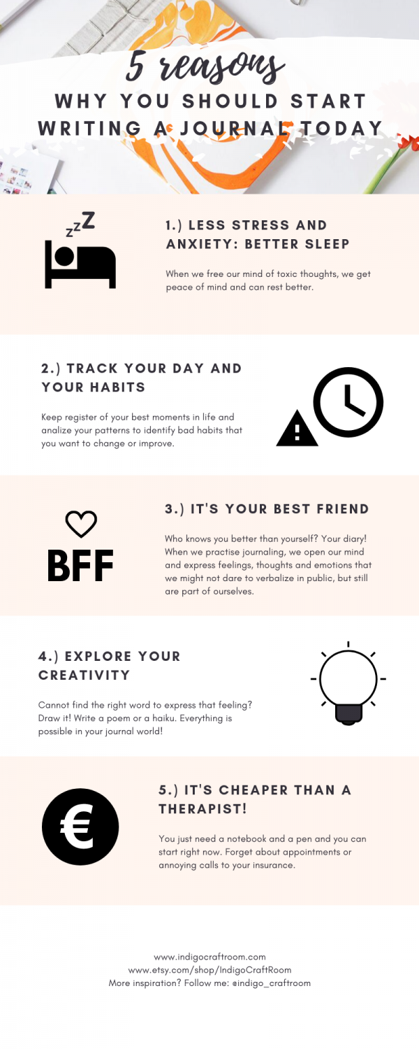It will likely help to find a really pretty notebook to start your journaling; something that you’ll look forward to digging into! Maybe get a set of really pretty pens to go with your new journal. Then get started! You might find that you begin to look forward to writing things down and/or that it relieves some stress in the process!