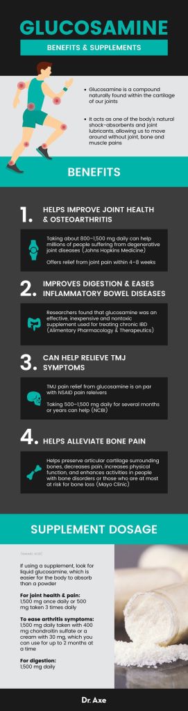 - Glucosamine can reduce inflammation. Studies have proven that regular use of glucosamine and chondroitin lowers levels of inflammation. Regularly taking this supplement can also help lower your risk of a number of chronic conditions.