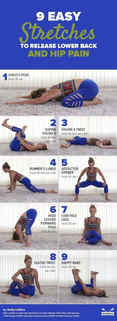In addition to muscle tightness in the hips, Matoska notes that stiff hip joints can lead to lower back pain. “A lack of rotational motion and ability to flex or extend your hip forwards or backwards can affect your walking, running, swinging, and twisting motions and increase mechanical strain on your lower back.”