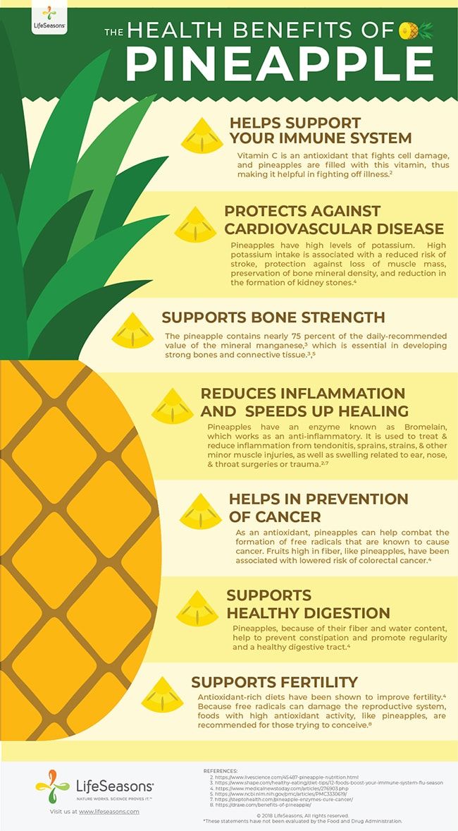 - With the antioxidants and bromelain, pineapples may reduce the risk of cancer