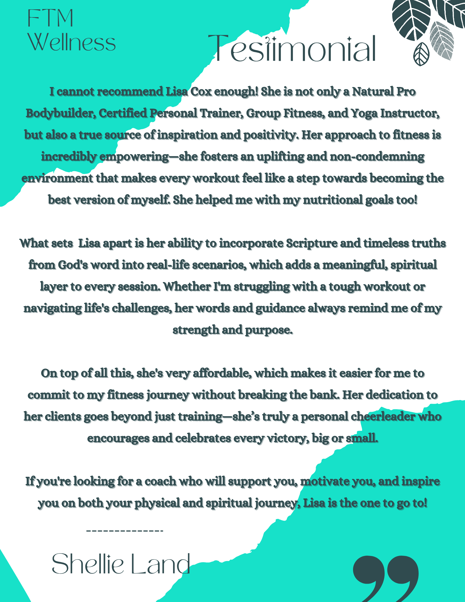 Client Testimonials Lisa would love to help you reach your goals! Her clients are improving their confidence, endurance, flexibility, mobility, strength, and overall health and wellness! See what they have to say! Share this: Click to share on X (Opens in new window) X Click to share on Facebook (Opens in new window) Facebook Like Loading...